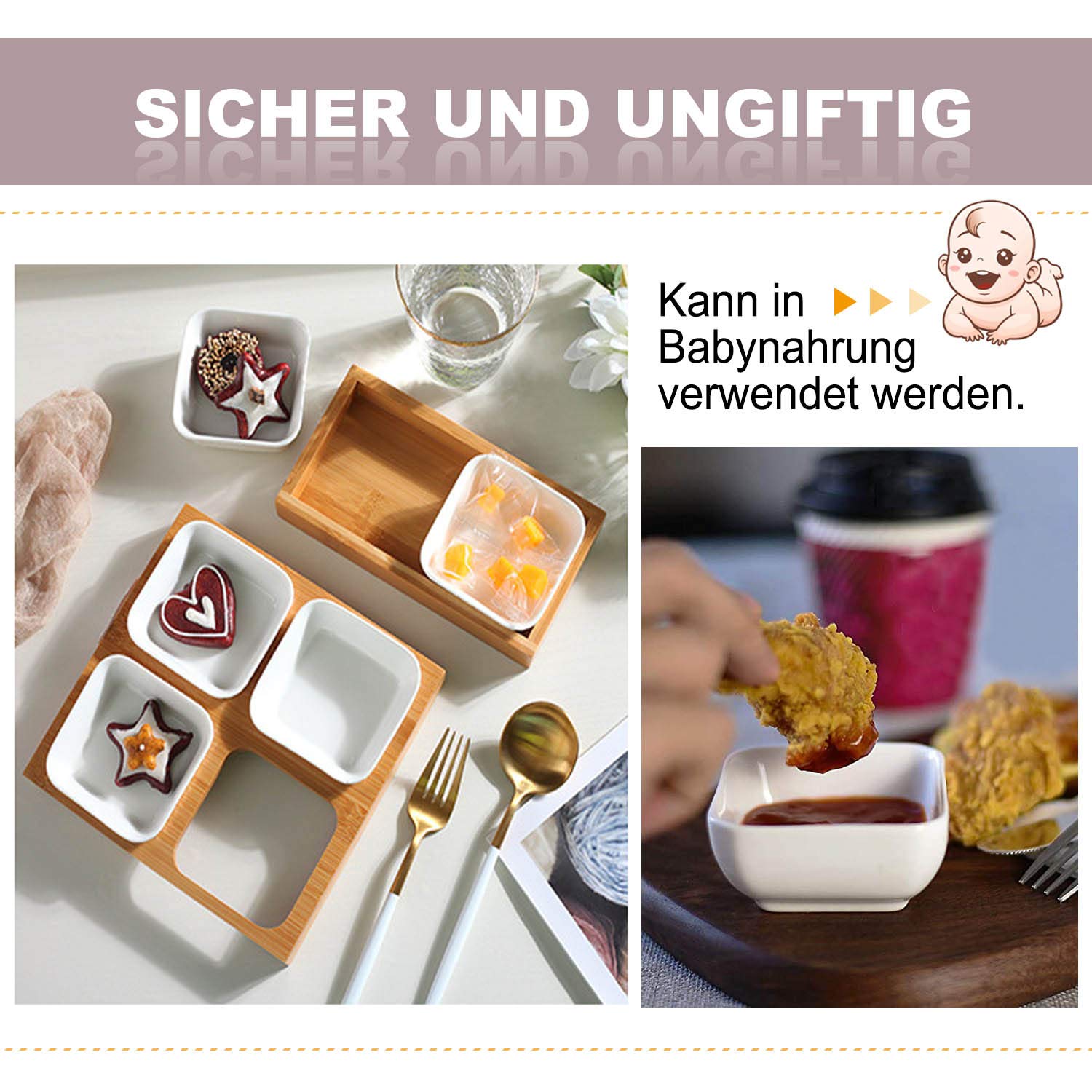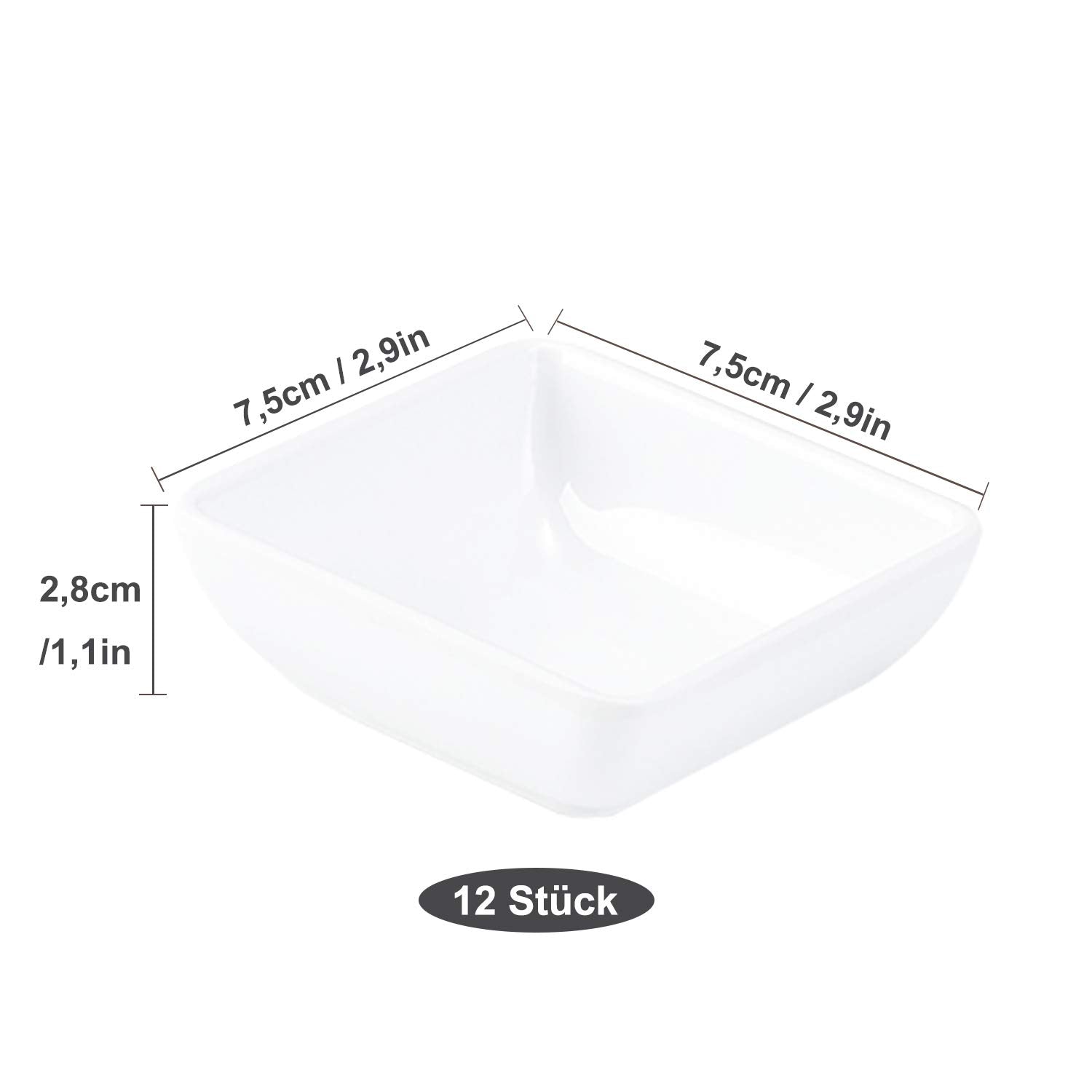 These compact, 2.95 x 2.95 x 1.1 in (7.5 x 7.5 x 2.8 cm) square sauce bowls are perfect for dips, condiments, soy products, and side dishes. Made with high-temperature hot-pressed material, they're impact-resistant, reusable, and built to last.