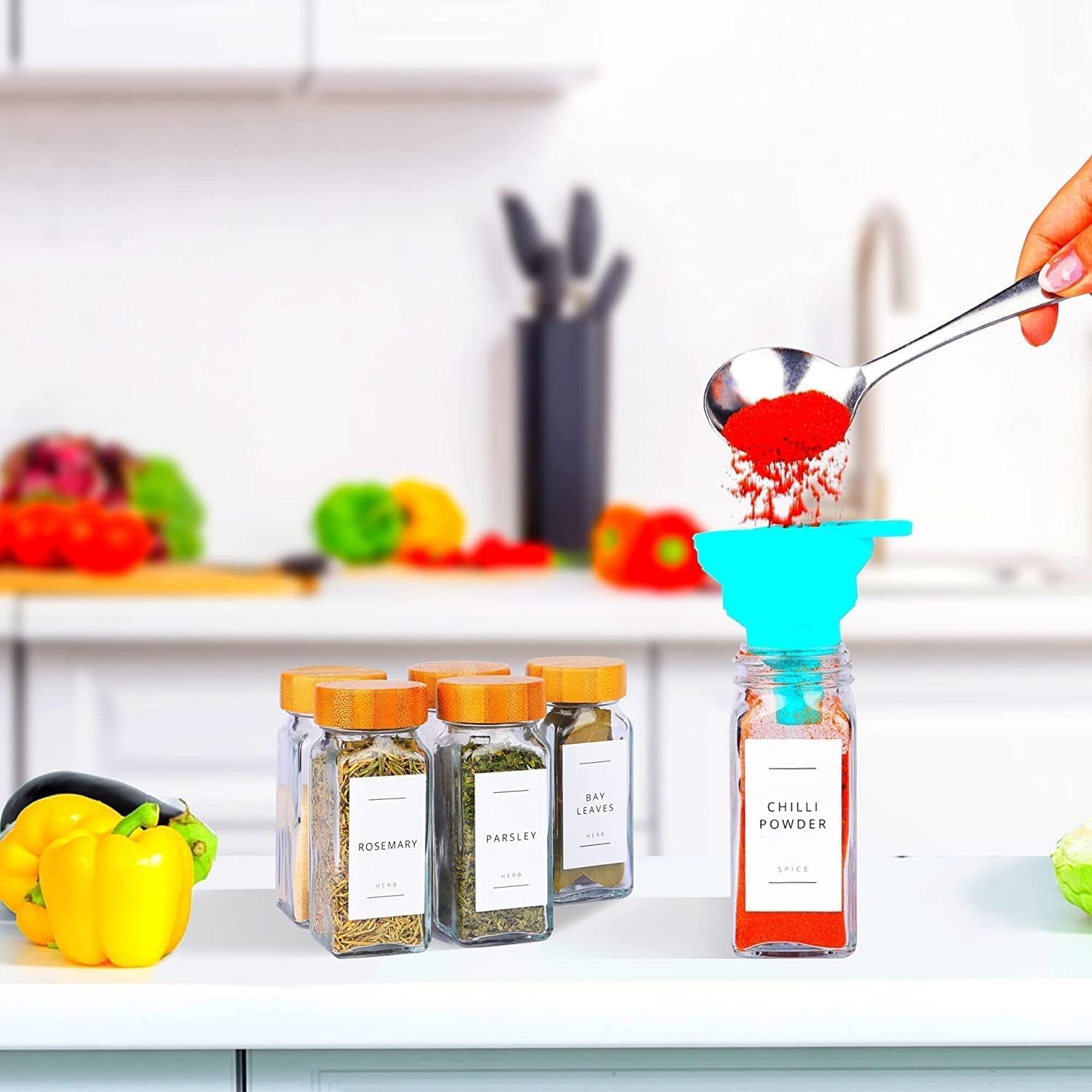 Keep your kitchen organized and stylish with this premium 12-piece spice jar set, made from durable, lead-free, BPA-free glass. Each jar features an airtight, screw-top bamboo lid made from 100% sustainable bamboo to lock in freshness and add a clean, modern touch.