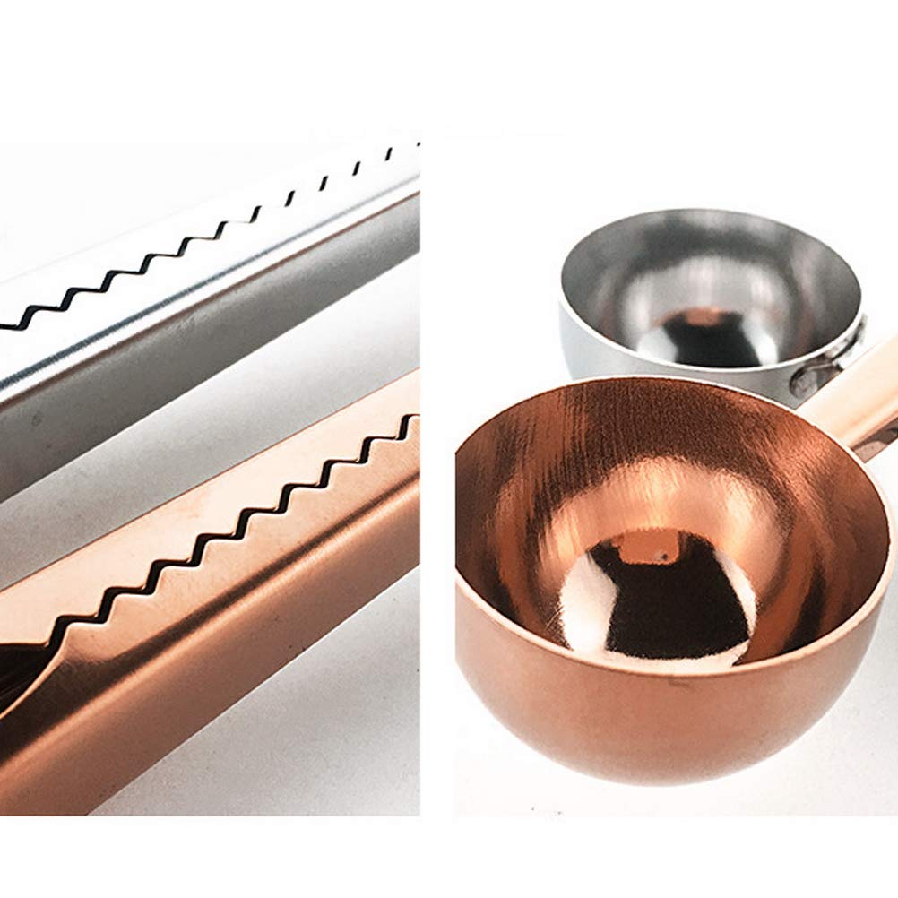 2PCS Coffee Scoop with Bag Clip, Stainless Steel Coffee Measuring Spoon Ground Coffee Sealer for cafetiere Ground Coffee and Beans(Silver+Rose Gold)