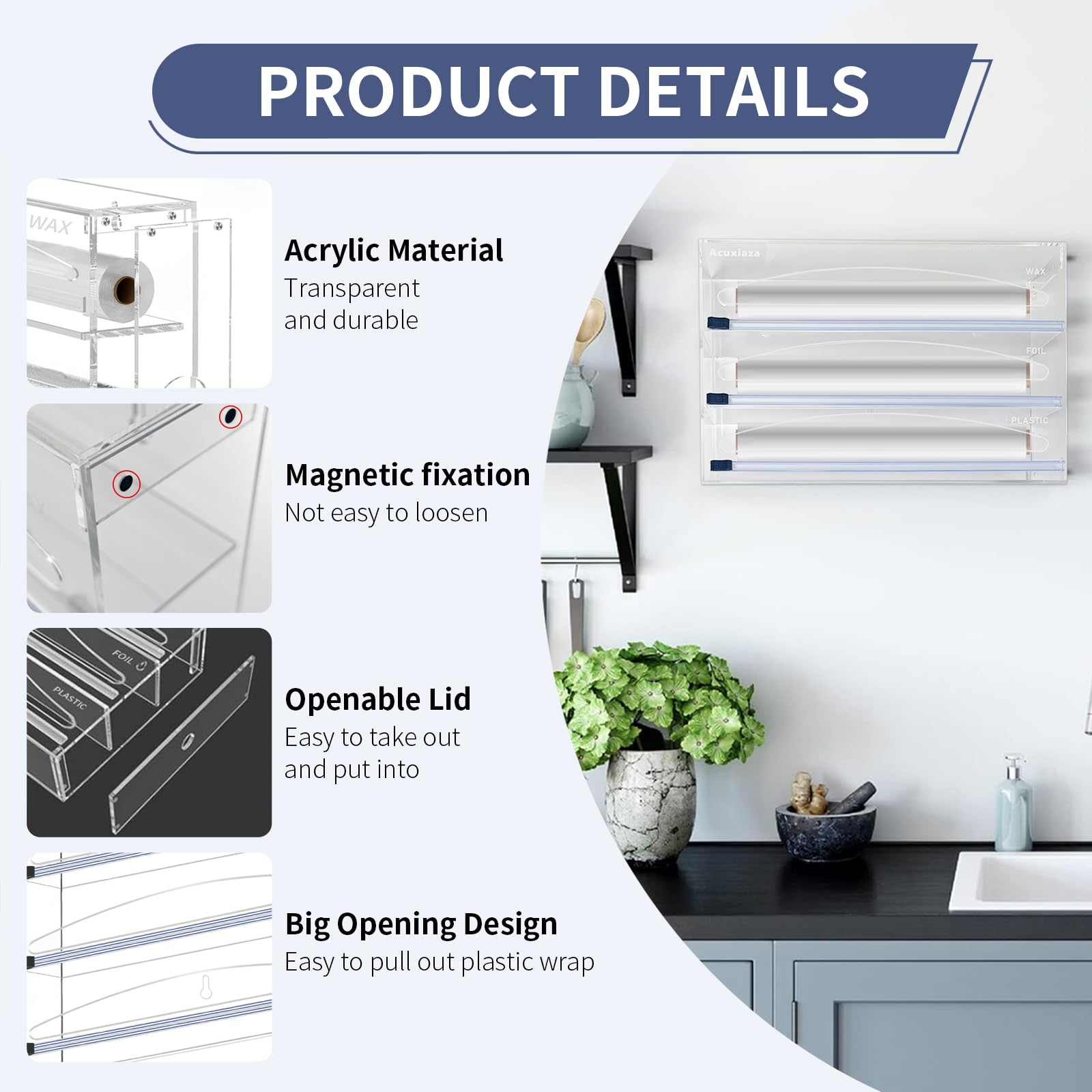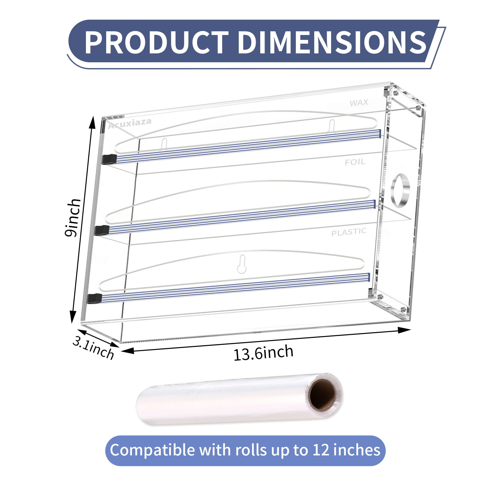Keep your kitchen neat with this sleek, all-in-one wrap organizer. Compatible with most brands of plastic wrap, aluminum foil, wax, and parchment paper, it fits rolls up to 12" wide and works perfectly in drawers or mounted on the wall.