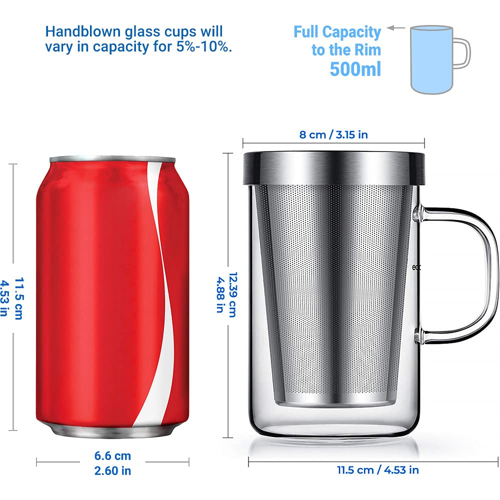 Enjoy 430ml of tea (500ml max capacity) with a removable, rust-resistant stainless steel infuser for smooth flavor and easy cleaning. The crystal-clear glass offers high transparency and a non-porous surface that resists stains and odors.