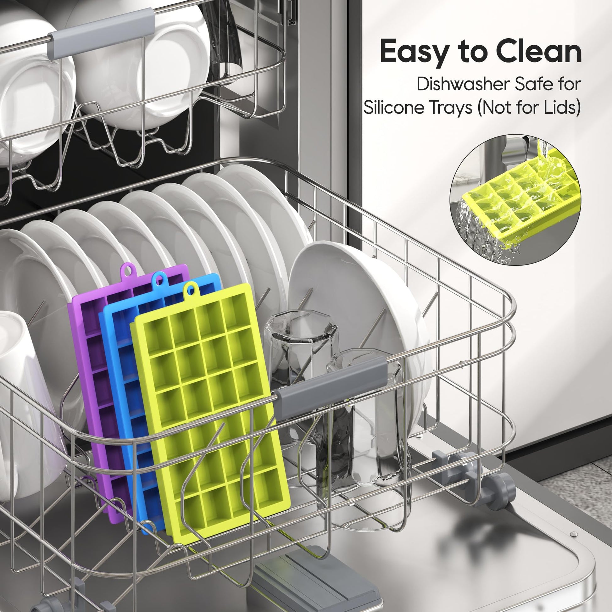 Each tray (18 x 12.5 x 2.8cm) forms 2.5cm square cubes and includes a removable lid to prevent freezer odors and allow easy stacking. The non-stick surface makes it simple to pop out cubes without cracking, and the trays are dishwasher safe (lids hand-wash only) for hassle-free cleanup.
