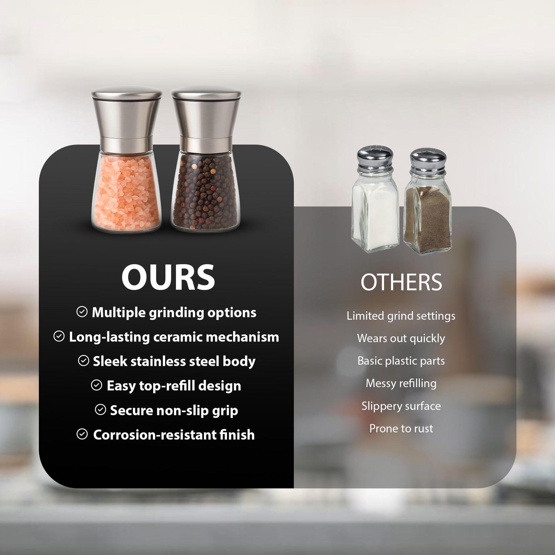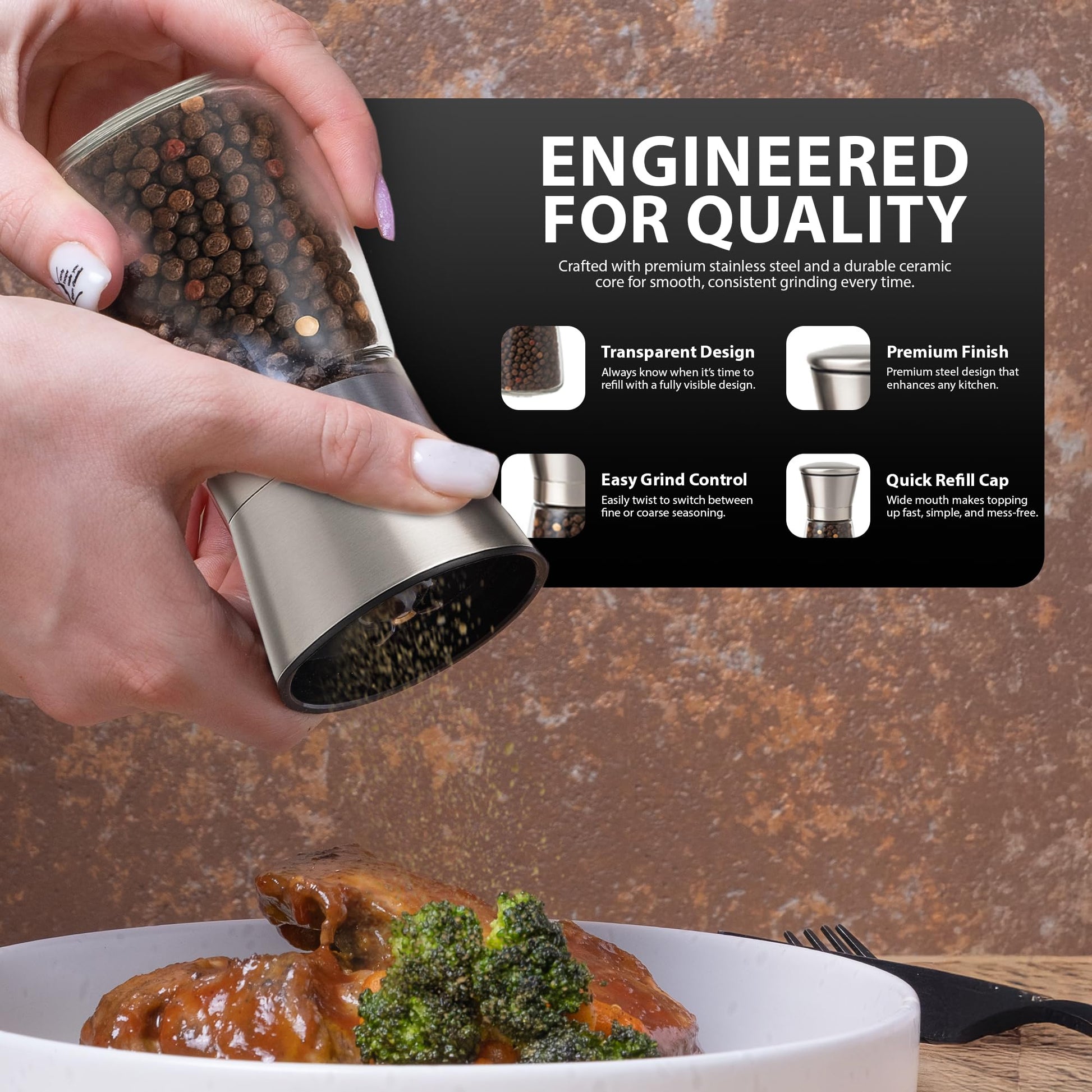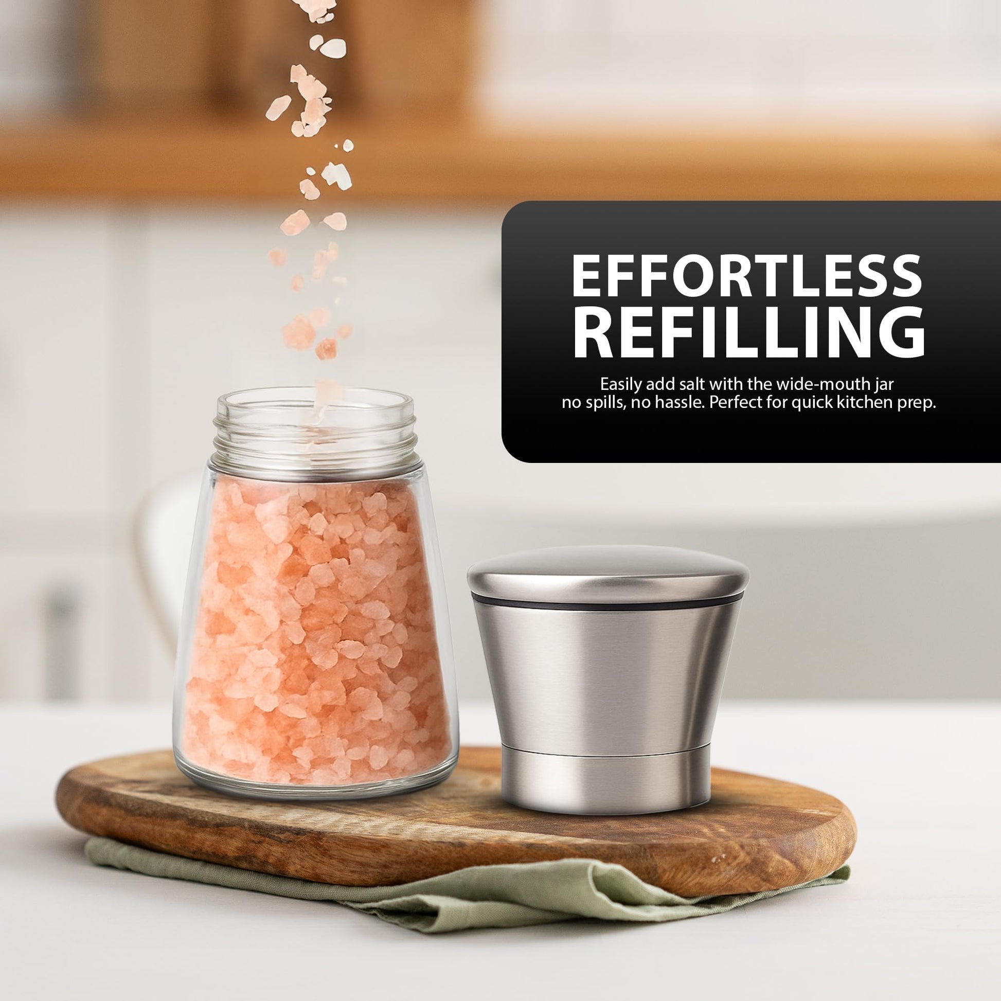 Versatile Use: Perfect for sea salt, black pepper, Himalayan salt, and spices
